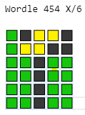 Sarnella Wordle 454 X/6 โฌโฌ๐จ๐จโฌ โฌ๐จ๐จ๐จโฌ โฌ๐ฉ๐ฉโฌ๐จ โฌ๐ฉ๐ฉ๐ฉโฌ โฌ๐ฉ๐ฉ๐ฉโฌ โฌ๐ฉ๐ฉ๐ฉ๐ฉ