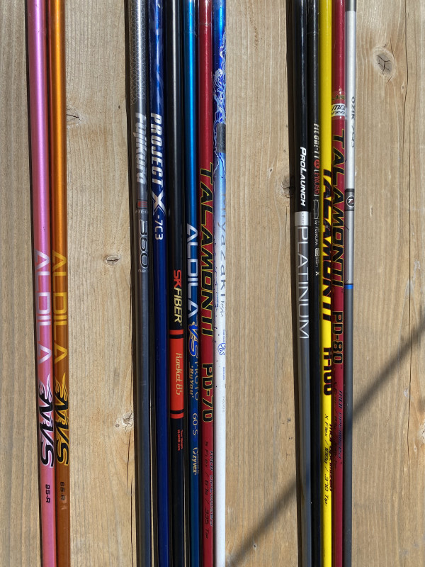 Wishon Royal Precision Shafts - 4-PW. These are the batch prior to Wishon switching from Royal Precision to True Temper. These were originally cut to the soft regular in the Wishon catalog. I changed a few to stiff and added extensions. These will need a little adjustment, but they were well-regarded slightly lighter, high bend point shafts.