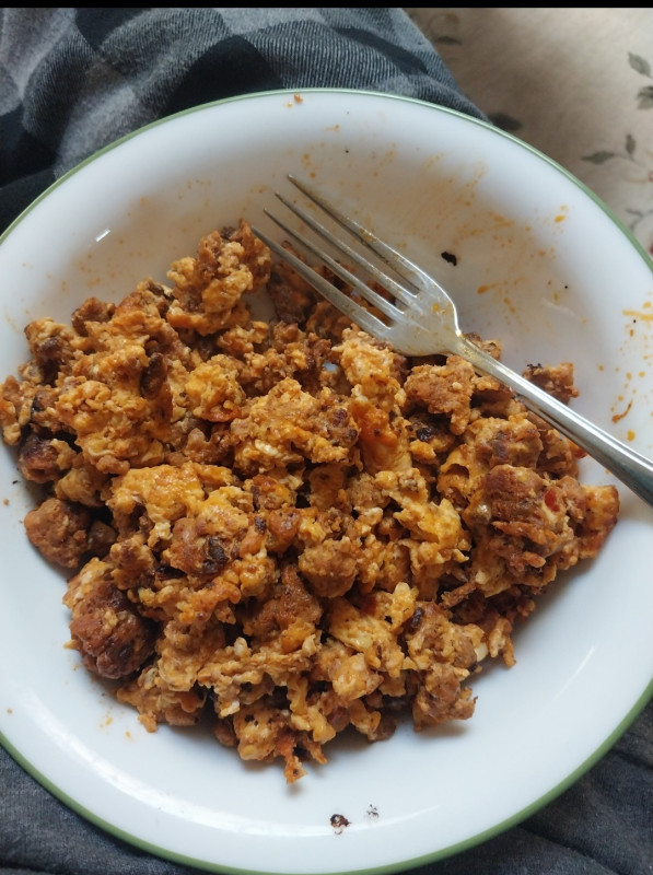 I made myself a burrito for dinner. I used a slice of leftover meatloaf, a small baked potato, and 3 eggs. The tortilla I used was 12-14" across, true burrito size. Turned it all into more of a eggs and hash type of consistency, then dropped it all on the warm tortilla, rolled it up and enjoyed myself.