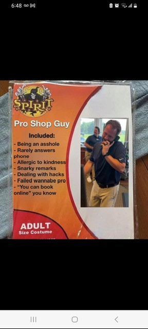 Bart comes in followed by 2 league people who have to pay in full but missed the first week. I’mfiguring that out and Bart comes on with his cane telling me I have to call AAA because he hit a curb and has a flat. Now he’s trying to do my math for the league people but he’s just confusing everyone. I tell him I need his AAA card. He gets out his wallet and can’t find it. The person I’m trying to do the math for is looking through his wallet as well. Neither one can find it but as I came up with my own decision on the league fee I see the AAA card in his wallet clear as day. I take it out and call AAA. They ask for his plate/tag#. He doesn’t know it. I have a shop full of people but have to go to the parking lot to get the number. I get back to the counter. As I’m talking to the AAA agent I got one guy I know at the end of the line looking at me holding up 2 waters, I wave him off to just take them. Then through the crowd comes my 92 year old father with HIS came to ask Barry if he needs him to pump up his tire because he saw him pull into the parking lot with a flat. So I have to tell him I’m calling AAA. Have to tell him 4 times because he keeps talking to BART about his air pump. Now I’ve got probably 8 people with tee times before the league that of course didn’t pay online, and won’t pay as a group, they pay individually and need balls, tees, drinks, crackers….