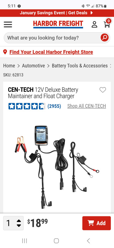 jsippy73 Search for battery tender. https://www.harborfreight.com/automotive/battery-tools-accessories/battery-chargers-maintainers.html