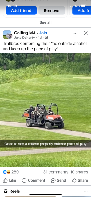 Talked to one of my friends today and asked him how his Monday round at Trull Brook in Tewksbury, MA was. He told me it took 6:45 !!!! It was a Monday afternoon…. Weather on the cool side too. 6 hours and 45 minutes. One of the guys went in to complain and they didn’t care… they said, “it’s busy out there, nothing we can do about it”.
