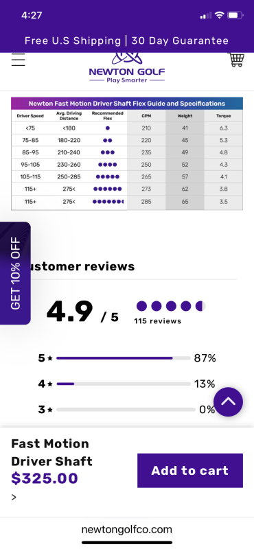 Guy I played with last week had one of these Newton Shafts. He had the Motion Purple one. He raved about them. Their fitting chart uses dots.