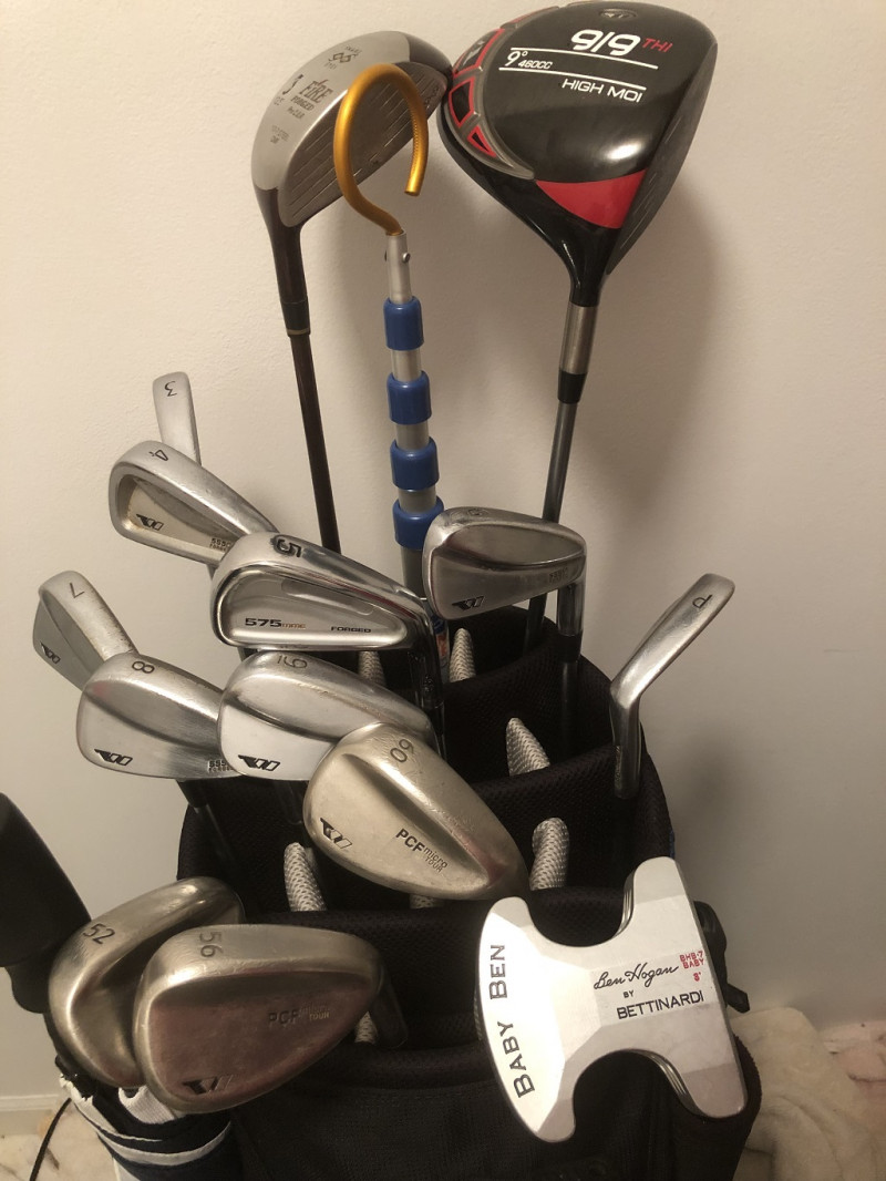 Backup bag A - another Wishon 919THI driver 9.5 degree, old Snake eyes 3 wood, Wishon 550 irons (5 iron broke so replacement is diff), Wishon wedges, and a Bettinardi Baby Ben...