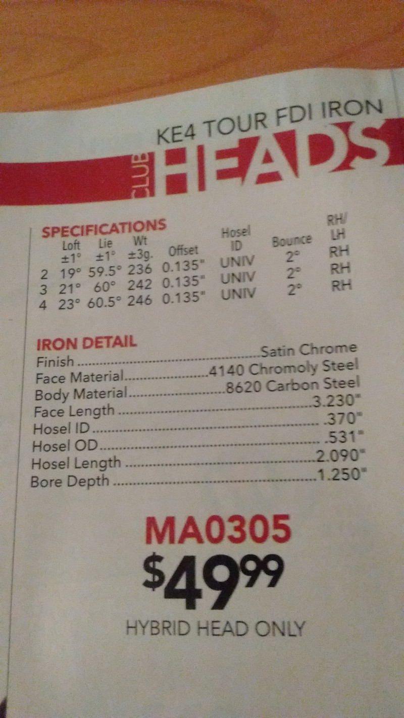 Other newish stuff from them are the TS1 and TS2 irons and KE4 TOUR TC hybrid.....all of which look great, but are pricey at 49.99 a head, which seems to be the price for them these days.