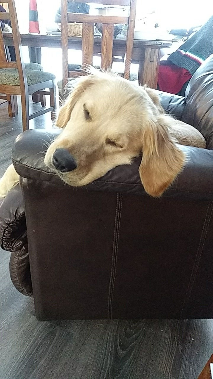 Of the 4 dogs, just Spike and Charger lay like that. Spike mostly. Yeah, it took a while to balance the coaster , then we had to take the picture, then we got my other son to see it. And he didnât wake up or move an inch. And then we tried balancing the empty plastic cup on there and after quite a few tries he woke up.