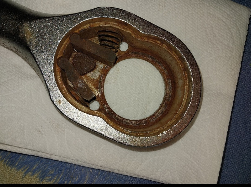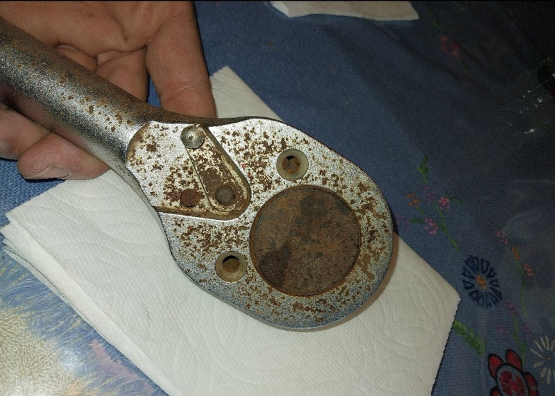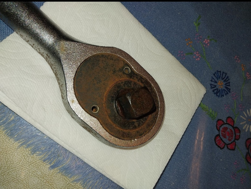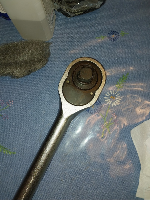 I also received the new to me ratchet today. It had enough surface rust that I decided to take it apart, remove the rust as much as possible.