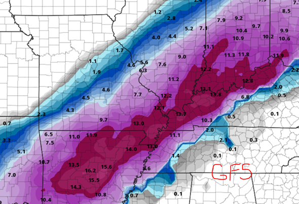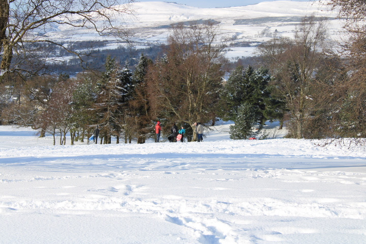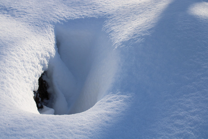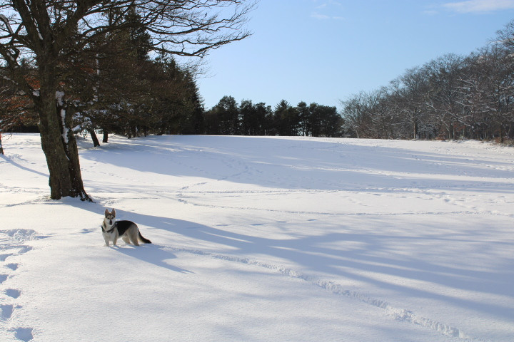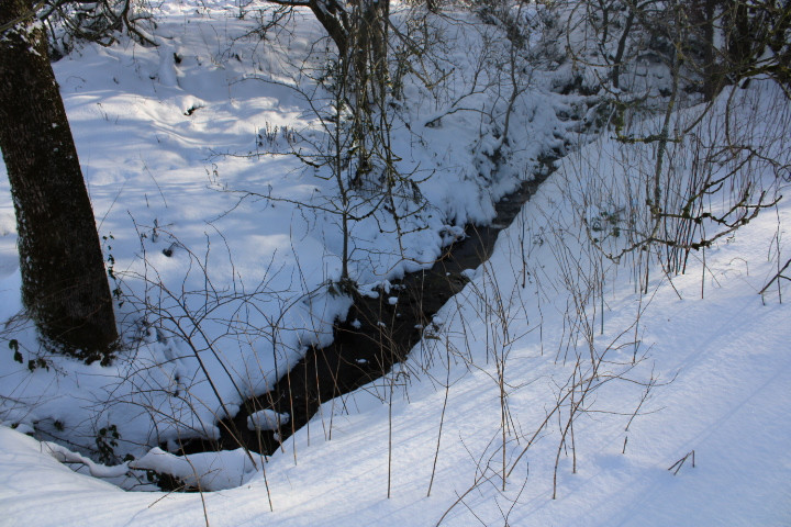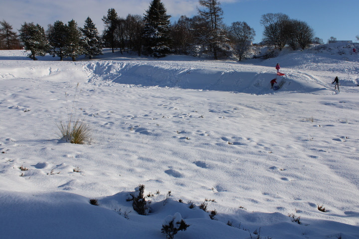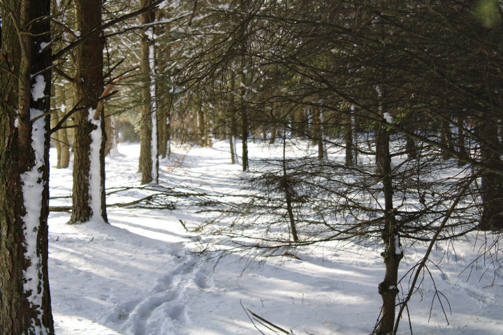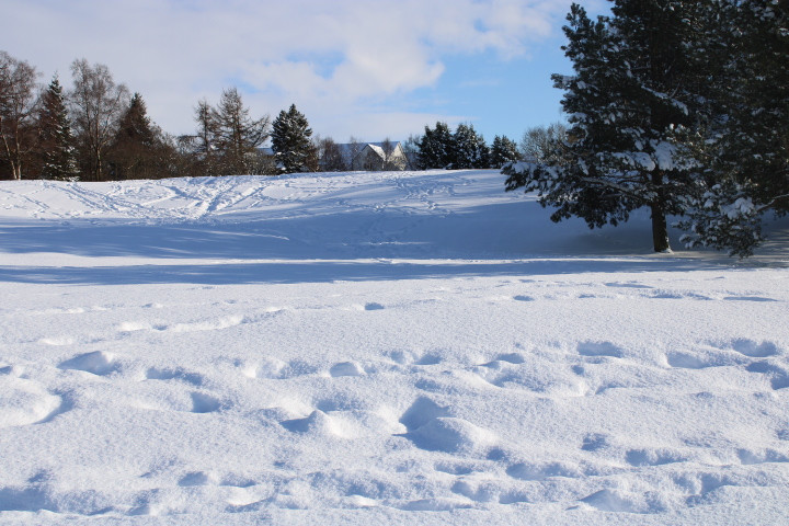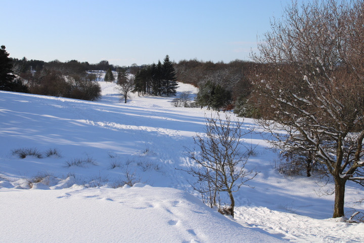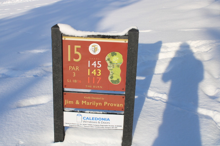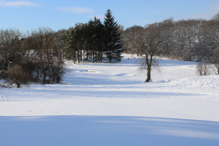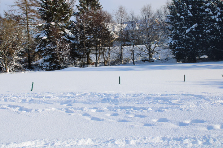 Don't stand under here too long, the trees will drop snow right down your neck. Tree line separates #17 and #18 fairways