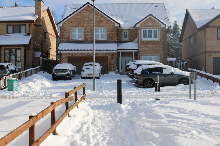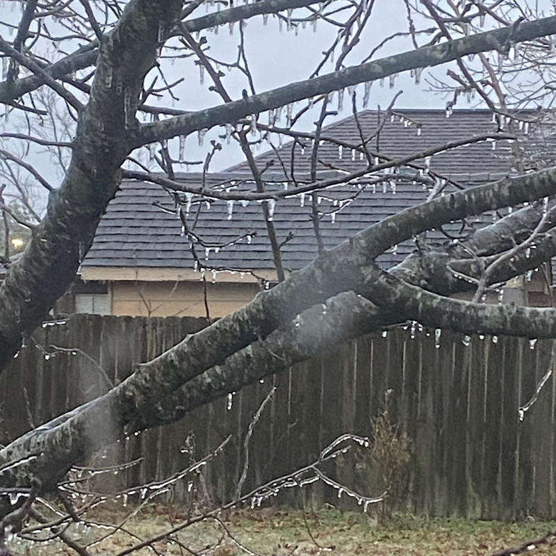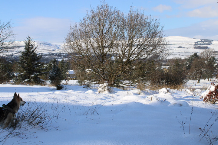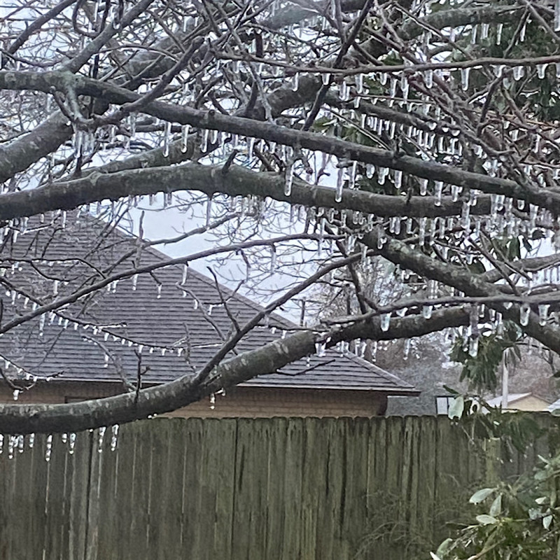 Spin on the spot to face south and there's home, with the driveway I cleared yesterday (and again today). Nice overhang above #1 son's bathroom window; I'll bring that down tomorrow if it's still there