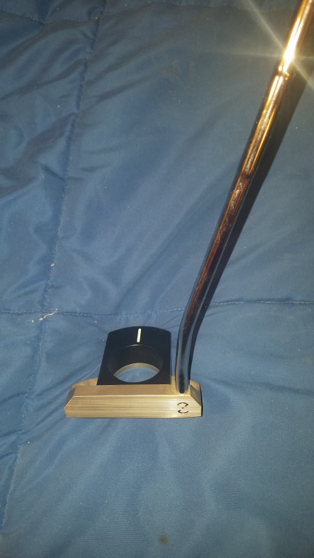 #16 fairway and a look up to the green, you might just make out the marker post behind the green against the trees; it's uphill so green is mostly blind. Then a look back to #17 green; that little red/orange thing in the far background is a lifering that we need to have due to the deep pond behind the greeen. We could do with finding a way to bring that into play but there's not a lot of room in this part of the layout.