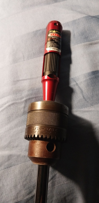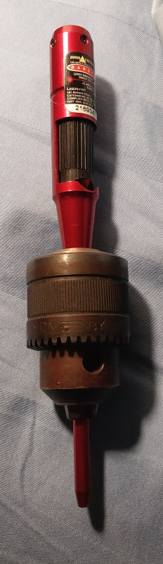 Well, I think I just figured out how to F.L.O. a golf shaft. I undid the 3 screws that held the clamp onto the shaft puller. Then I put that clamp into the bench vice. To create the pattern on the wall, I used a laser bore sight tool, and for the weight, I used an old drill chuck.