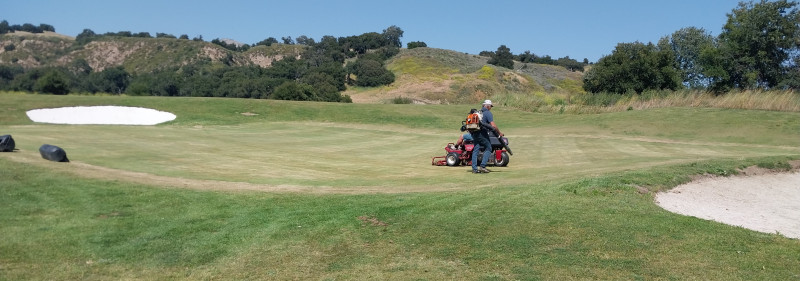 About noon, I was called over to the practice greens. We started to verti cut the greens, starting with both practice greens. I ran the blower from there through 8 mostly. The boss man decided to run it for a few minutes on 7 and 8.
