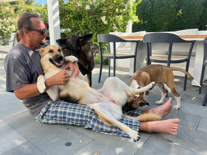 This is Sansa, she's the brindle on my lap, she has known me for years, her and I get along very well. The one standing is Luna, she has been with them for a year or so. This weekend was the 1st time I got to meet her.