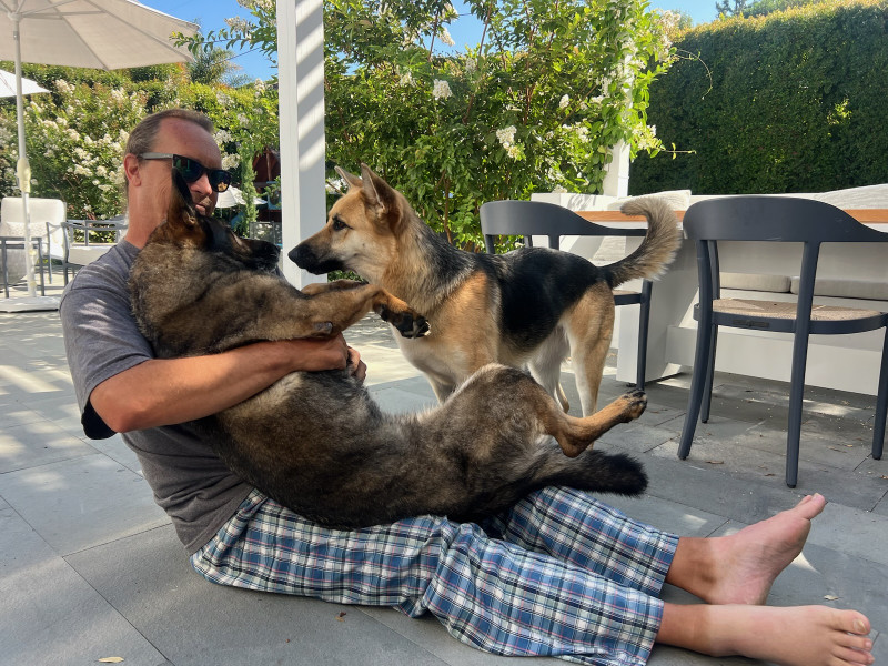 I got home just over an hour ago. I spent the weekend down in Sherman Oaks with one of my brothers, his wife, two kids, and three dogs. Two of those dogs like me, the other one is standoffish. After treats, she was a little better as long as I was sitting on the ground.