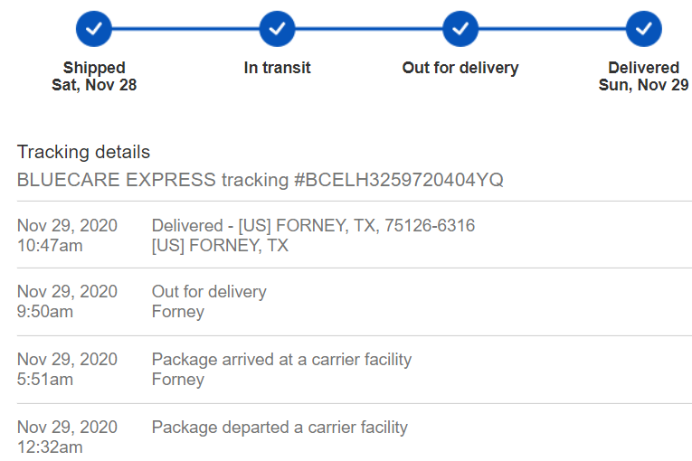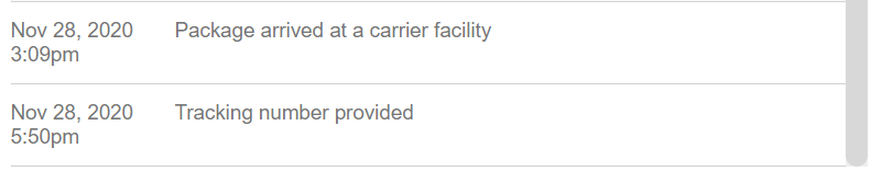 EDIT 2: This is what the tracking looked like. It's all fake. Had forgotten this was a Saturday night purchase, and a Sunday delivery. Look at the beginning. Says my package arrived at carrier facility before tracking was even provided. Was there long before it says it was delivered.