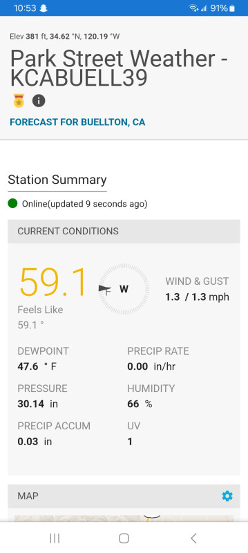 Mostly overcast. Yesterday, there was some really good wind blowing from the west. Probably a 3 club wind for the gusts. Then, it just stopped. No warning, just not even a breath of wind. It was so still that I hit my 52 on a hole that was about 130-140ish. I was 10' off the fringe, I made par. The next round, I hit my 9 iron into a slight breeze and dropped it on the green and made par.